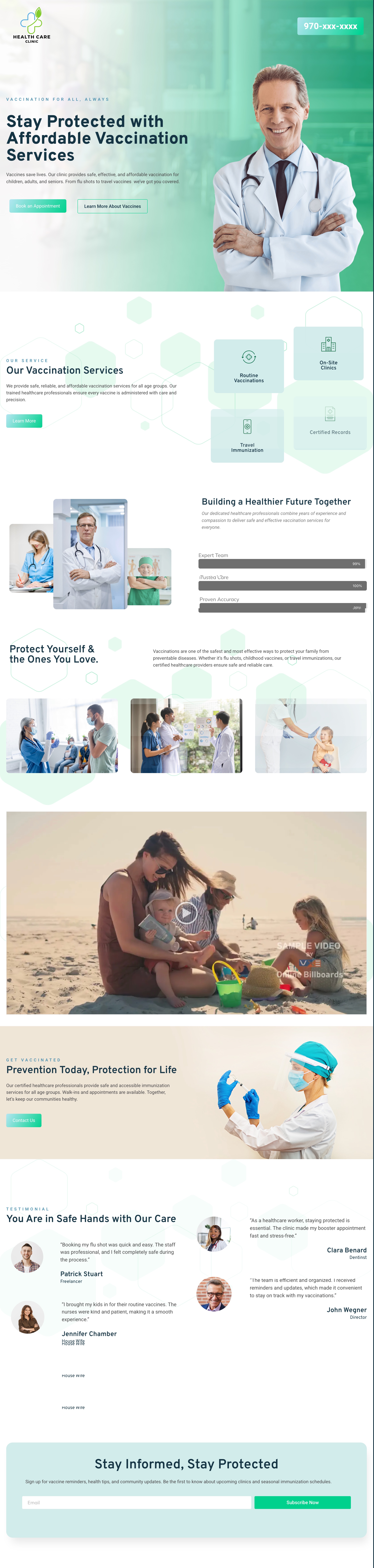 • Healthcare-Focused Professional Design — Clean, calming visual elements that convey medical expertise and safety, creating immediate trust with patients seeking vaccination information.
